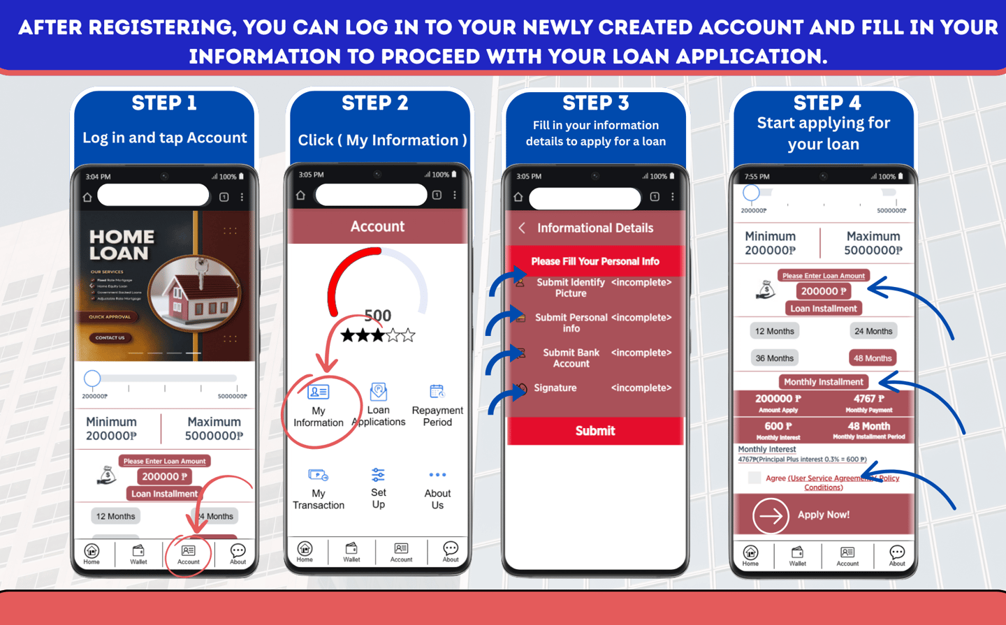 You can start applying for a loan after completing your registration and meeting all the requirements.